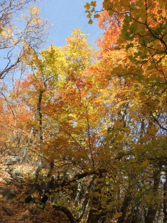 Our hike had a bright fall day to explore and hike through the forest of beautiful red,yellow and orange maples. The hike is a fairly strenuous five mile loop. The hiking group has made this hike several times over the last 5 years. This is a very popular place this time of year and the parking areas are often packet with people who came to admire the fall color and enjoy the cool temperatures.