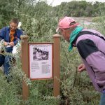 On Saturday morning September 8th the mountains were shrouded with heavy clouds, not a good day to hike to Tecolote Peak with it’s 360 degree views. The morning was gloriously cool ushering in the first taste of autumn. The First U group of 7 decided to go to Rio Grande Nature Center instead. We walked in the Native Gardens with helpful signage at the plants. Then we walked on the Aldo Leopold Trail w/ river views, signs about Aldo and time to socialize. Photos by Scott Lake and Nancy Carrill0 (where noted).