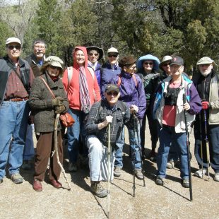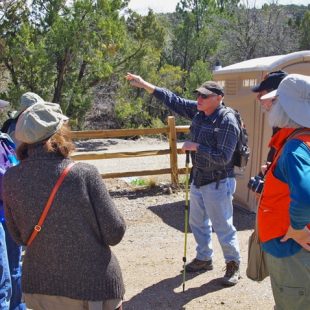 Splendid hike and relaxing lunch at travertine pools and picnic tables, Carlito Springs! It is quite a beautiful setting with newly developed trails by Bernalillo County Open Space, 2014. Most of the group did about a 1 and 1/2 gently graded trail to the house. Mymm and Kathleen hiked the shorter, steeper 1/2 mile trail to do some birding. We saw Red Crossbills, male/red, female/dull yellow-green plumage and gray juveniles right above the pools and could point them out to the others, plus Pine Siskins, Black-capped Chickadee, and Townsend’s Solitaire. And the group saw a large yellow Tiger Swallowtail and Mourning Cloak butterflies.