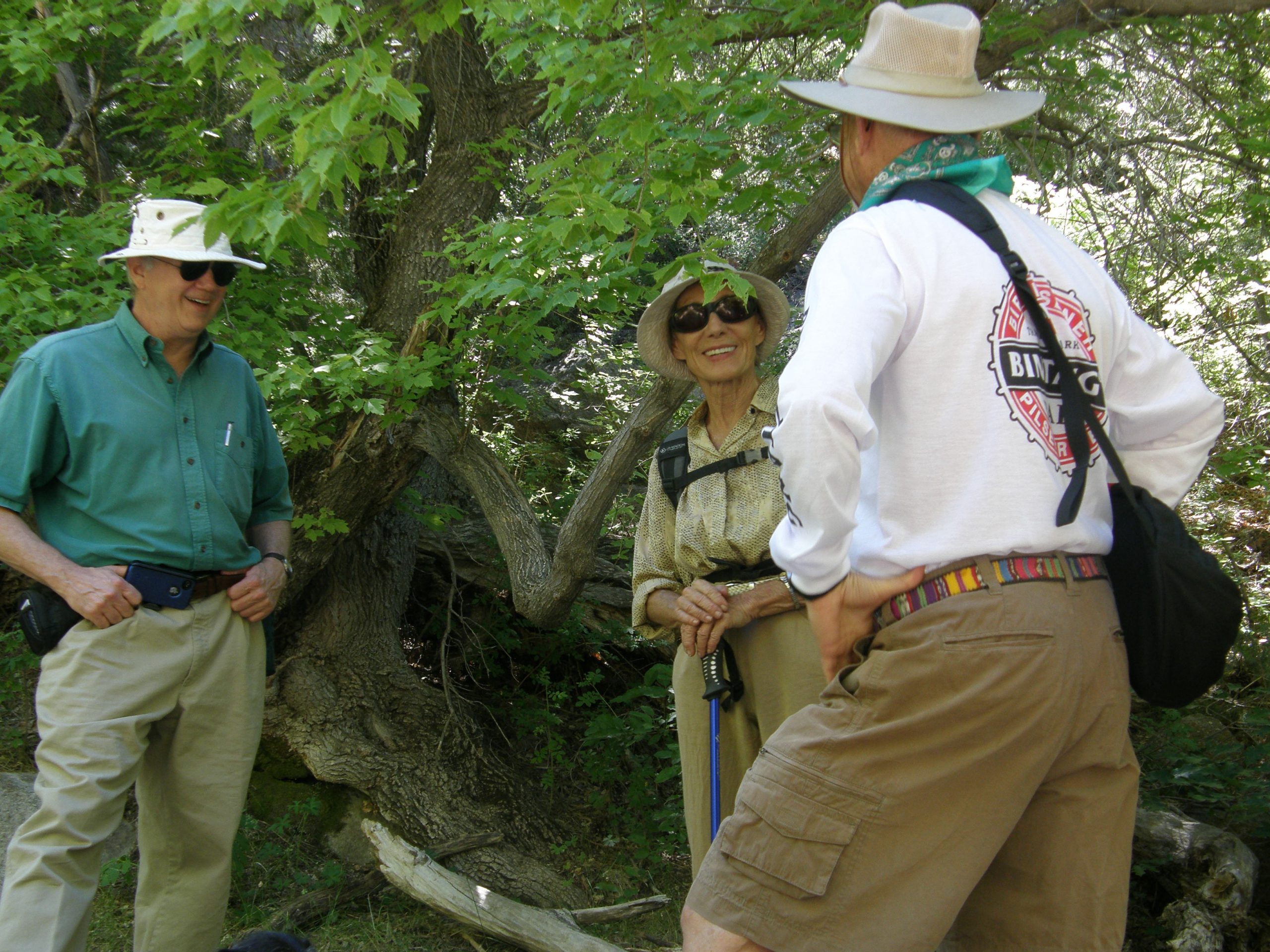 Hikers taking a break at the spring - Hikers Rick Held, Eliza Schmid, Bob Haladay's back (Kathleen)