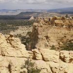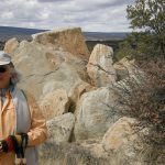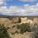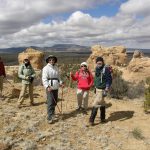 The one photo is of Mt Taylor. You will recognize it. Others are the vistas from Sandstone Bluff and rock formations along the “floor” plus the hikers. Note the snow squalls in the distance. And the homestead ruin where we parked our cars including fireplace.