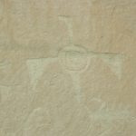 A great day at Sandstone Bluffs with initially cool, windy weather on the bluffs that warmed up quickly – about 70 degrees at lunch at the petroglyph panel near the arch. The fluctuating light was wonderful for viewing and photography.