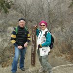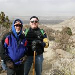 The group included: Eliza Schmid who sped ahead of the rest with her two doggies who love to strike out being seasoned former Sierra Club trekkers with leader Eliza, their mistress. Others included sisters Liz and Meg Davidson, Rick Held, Nancy Carrillo and Dave Huberty, Dave Colton, Kathleen Rhoad, Chris Glore and Bob Haladay. (Neal McDonald joined the hike for a short time.) All agreed it is a great hike and hope to do it in warmer weather to see the cottonwoods and greenery. The distance is about 3 miles and if the full distance is hiked to the top, about 3 hours in duration. All pictures by Kathleen except where noted.