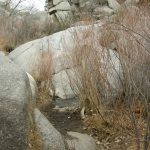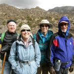 Eleven hearty First U’s hiked the Embudo Canyon trail climbing up and up, steep much of the way on a cold, windy day – our coldest hike to date. Pam Bliss, leader followed the horse by-pass trail in the midst of boulders nearly to Three Gun Spring Trail. The elevation in the center of the hike is 8,478′. On the way down into the canyon bottom it snowed about noon and we passed water at some boulders.