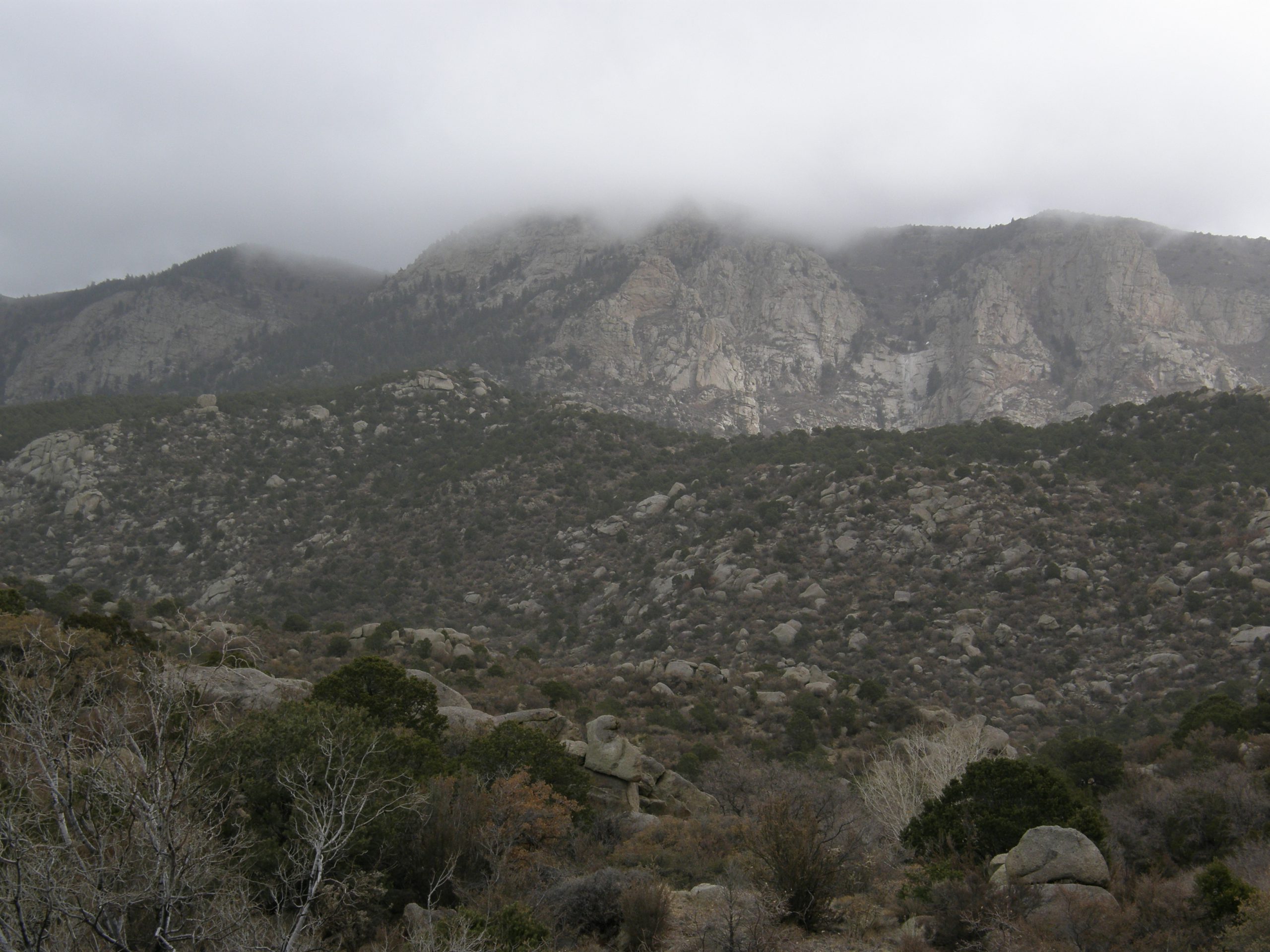 Sandias shrouded in clouds - snow on the way!
