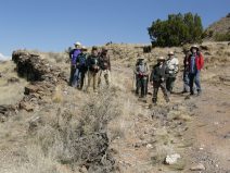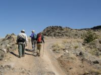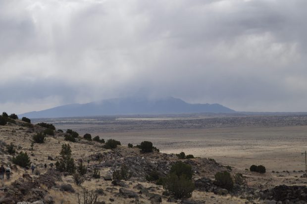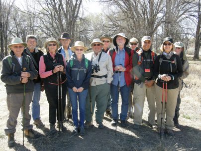 On Sat, March 12 a group of 13 First Unitarians and friends hiked La Bajada Loop, about 4 miles taking about 4 hours: Scott Lake, Dave Colton, Helene Kiecolt & Tony, Ed O’Connor, Judith Parsons & Bruce Newton, Don Sarver, Bob & Carol Diggelman, Diana & Bob Hayes and Kathleen Rhoad, leader. The first 1.8 mile is pretty strenuous, up La Bahada Hill to the top of the 500′ volcanic escarpment with views of the Santa Fe River in the canyon, and the Sandias. Once on top of Mesa Negra there are great views of the Jemez, Tetilla Peak, Santa Fe Baldy and Truchas Peaks. Along with cattle.