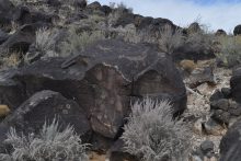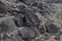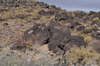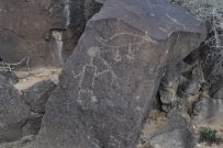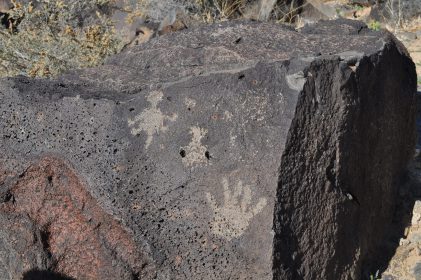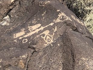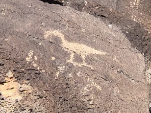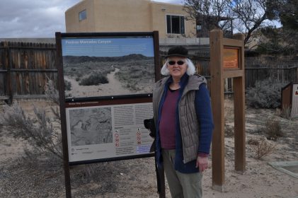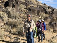 A group of five walked on the trails along the Piedras Marcadas escarpment: Kathleen Rhoad, Nancy O’Dononhue, Susan Cote, Scott Lake and Carolyn Brown. It was a sunny day and petroglyphs were easy to spot.